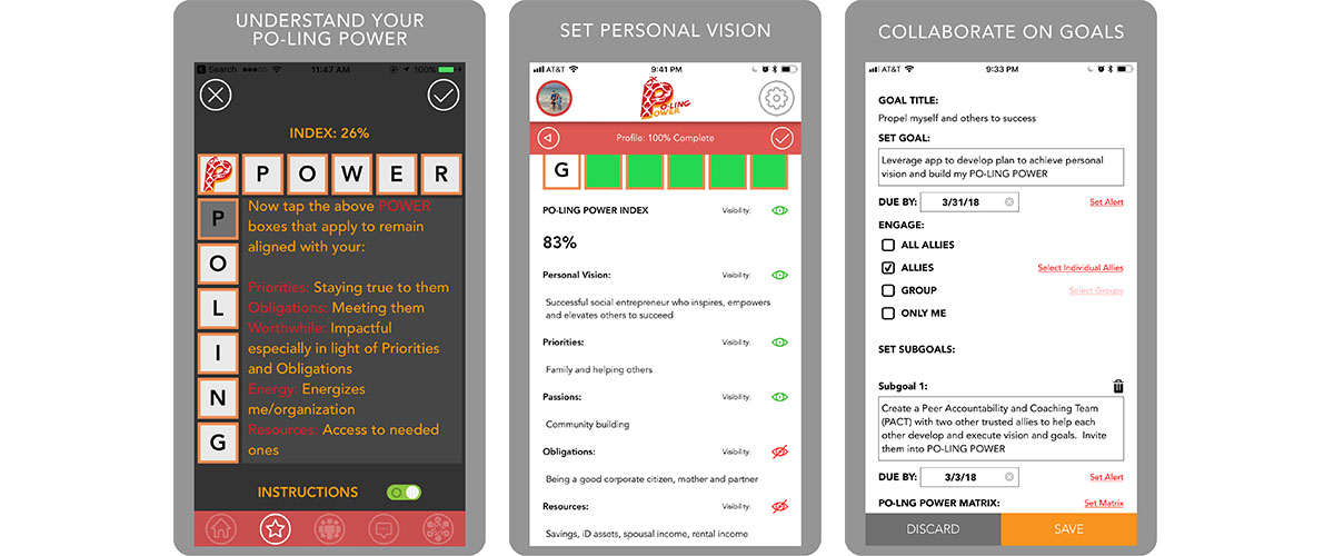 PO-LING POWER™ is a professional development and community building platform to propel yourself and others to success. This collaborative app makes it easier for you to engage allies to set, execute and track goals aligned with your personal vision while leveraging the PO-LING POWER™ framework and tools. With this platform, you can more effectively develop and execute a plan to get from where you are today to who you want to be, while working with allies to share goals, feedback, and support that keep you accountable and focused on managing what matters. By engaging allies in deliberate, meaningful and efficient ways, we can help propel everyone’s success.